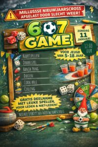 Door de sneeuwval is de Nieuwjaarscross helaas afgelast. In plaats daarvan organiseren we op zondag 11 januari de 6-7 Games: een gezellige spellenmiddag voor jeugd van 5 t/m 18 jaar. Gratis deelname voor zowel leden als niet-leden.
